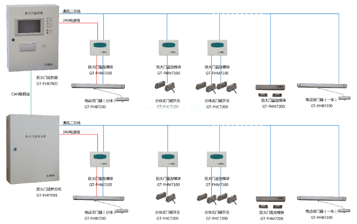 防火門、閉門器和防火門釋放裝置三部組成。防火門可以是符合GB12955-2008《防火門》的鋼質(zhì)防火門、木質(zhì)防火門、玻璃防火門;閉門器是符合GA93-2004《防火門閉門器》緩沖液壓式防火門閉門器,防火門釋放裝置符合Q/SZBC01&2007《常開防火門釋放裝置》。防火門按照平時的開啟狀態(tài)分為三種:一種是平時呈開啟狀態(tài),火災(zāi)時自動關(guān)閉,稱之為常開式防火門,一種為平時關(guān)閉狀態(tài),有人走動時,要推動門開啟,人走過后在閉門器作用下自動關(guān)閉,有恢復(fù)到關(guān)閉狀態(tài),稱之為活動式防火門。另外一種,平時保持關(guān)閉狀態(tài),只有通過授權(quán)的人才能通行,在緊急情況下自動釋放防火門使人員通行,稱之為常閉式防火門。